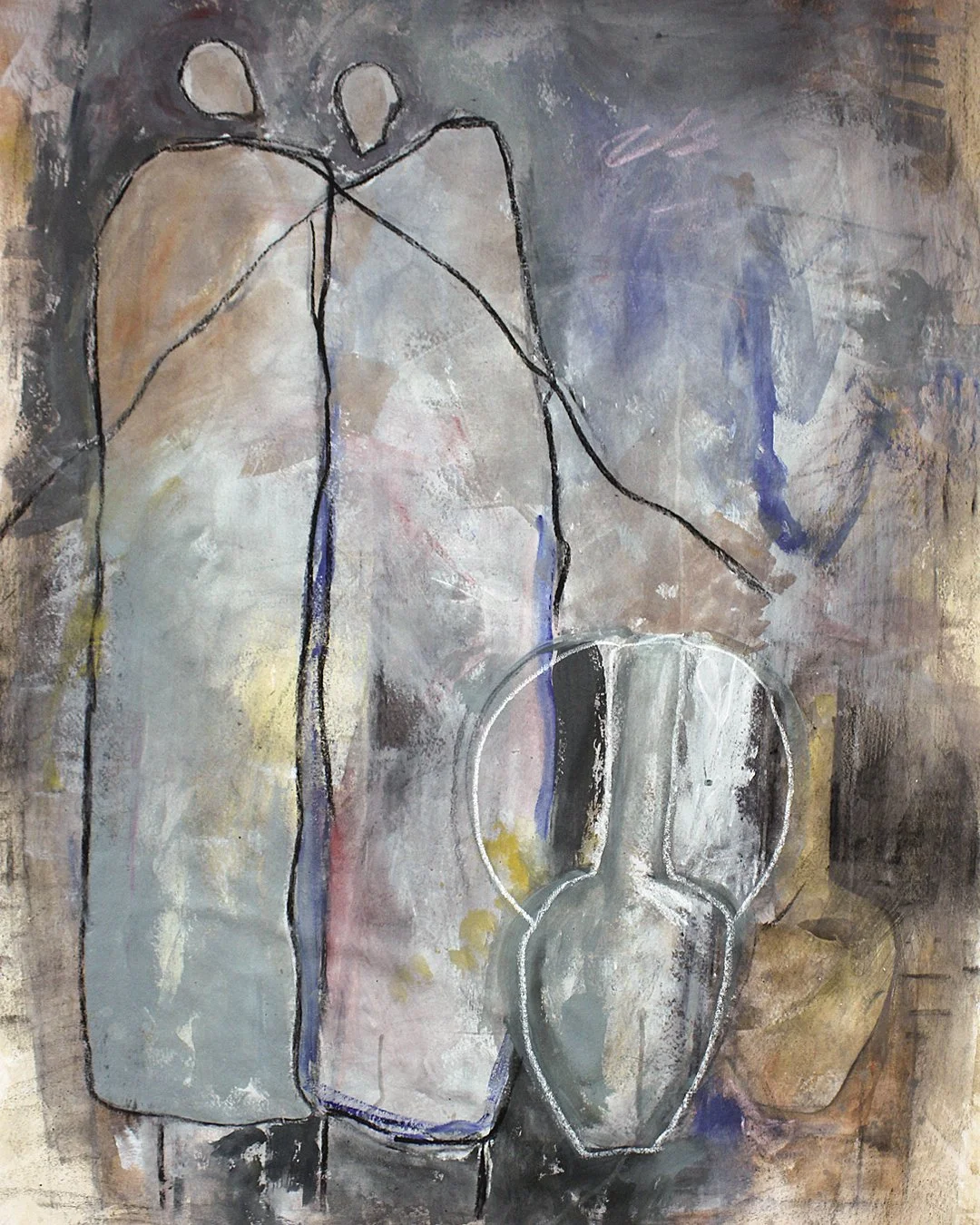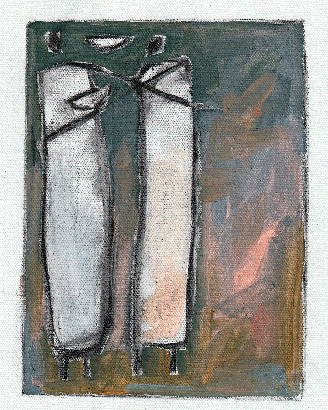 Love and Dust, charcoal and oil on canvas, 36x48”, 2025
